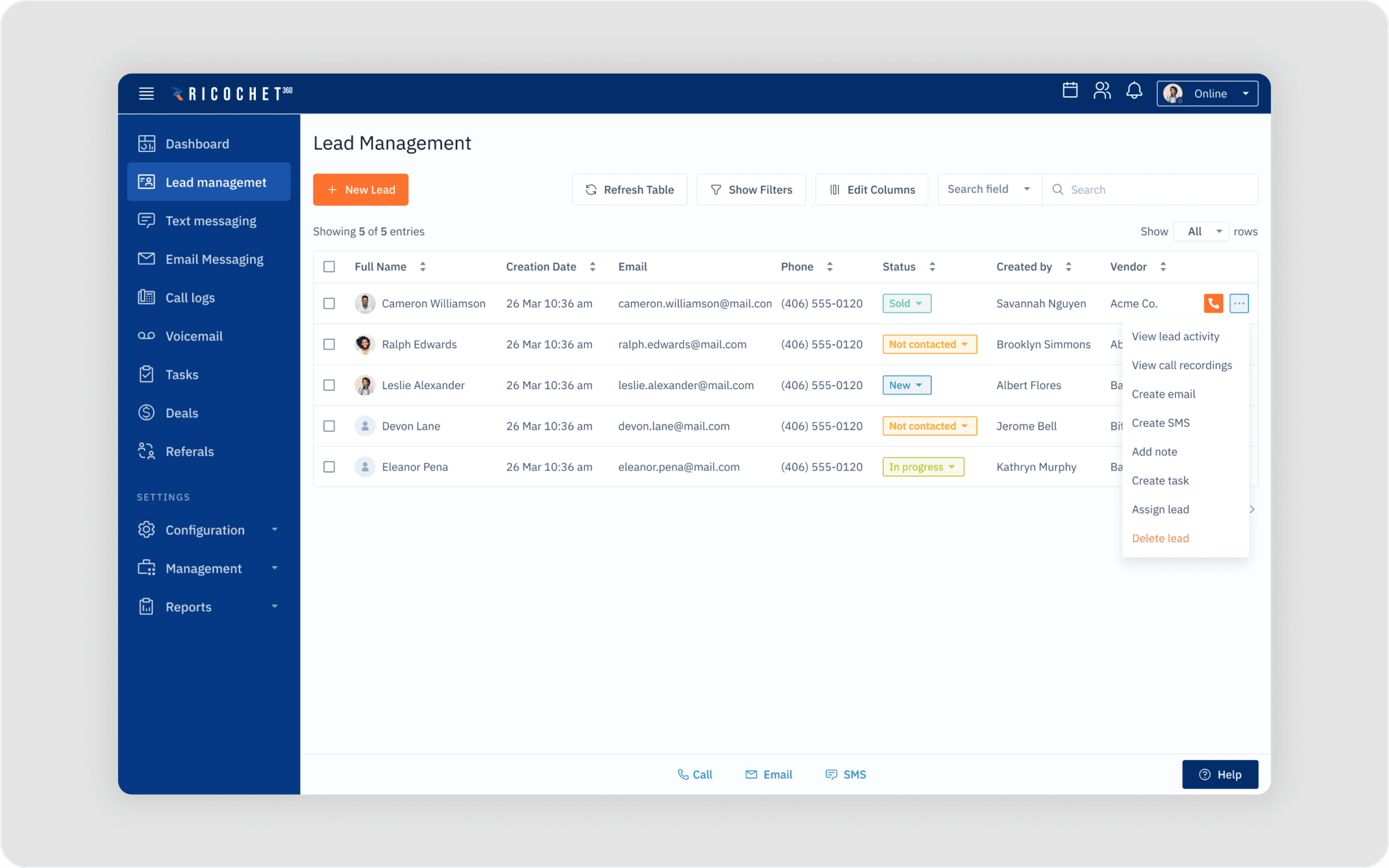 Lead Management Screen