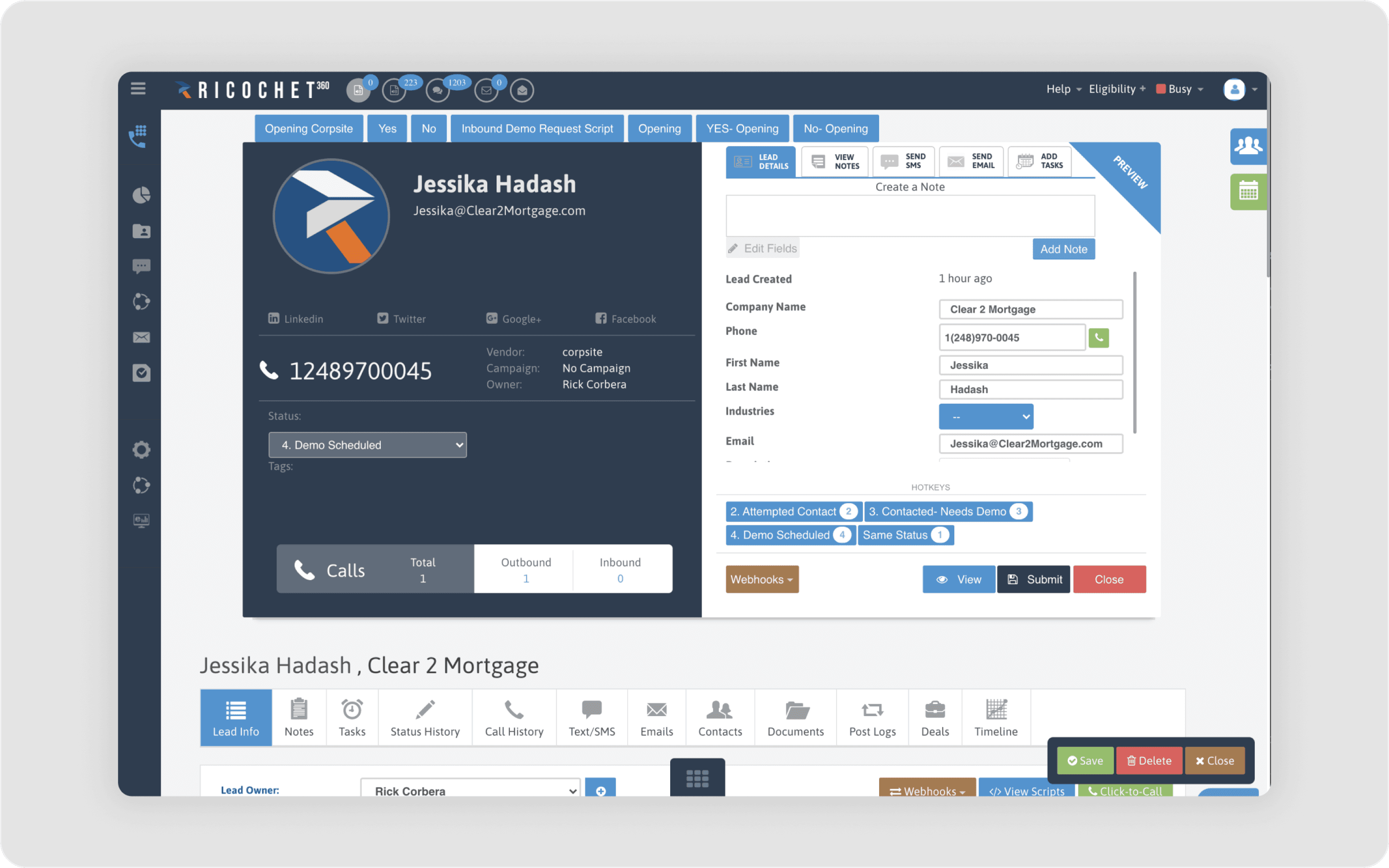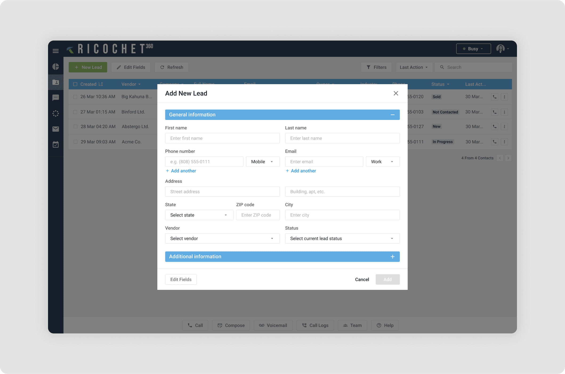 Decluttering the Interface: I removed irrelevant information from the screen to help users focus during phone calls. Only the most critical details, such as the lead’s name, phone number, and call history, were displayed prominently.