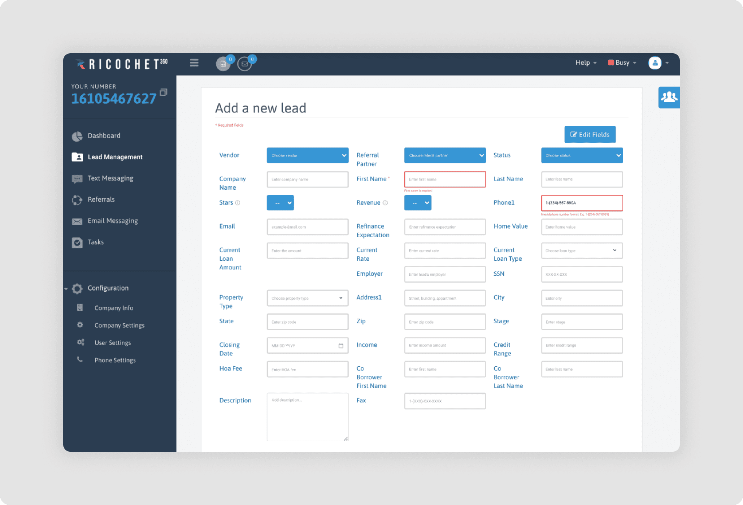 Data Entry Challenges: Inconsistent formatting for fields, such as phone numbers, caused frequent errors and frustration during lead management.